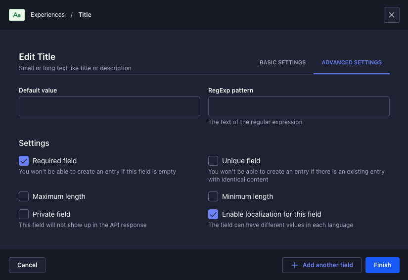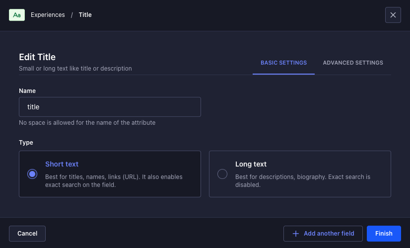 Step 9: Select the “Text” field.